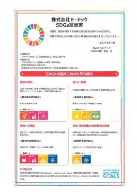 この度、当社は、SDGsへの取り組みを積極的に進めていくため、正式な宣言書を取得しました。